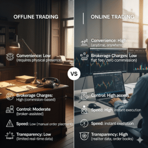Before the rise of online platforms, most trading in India was done offline through traditional brokers. Even today, some investors—especially those less comfortable with technology—still use this method.